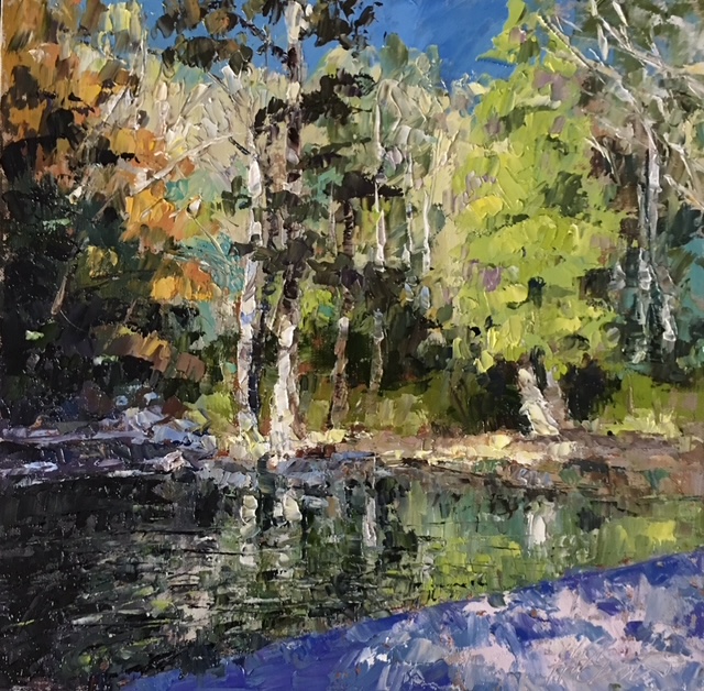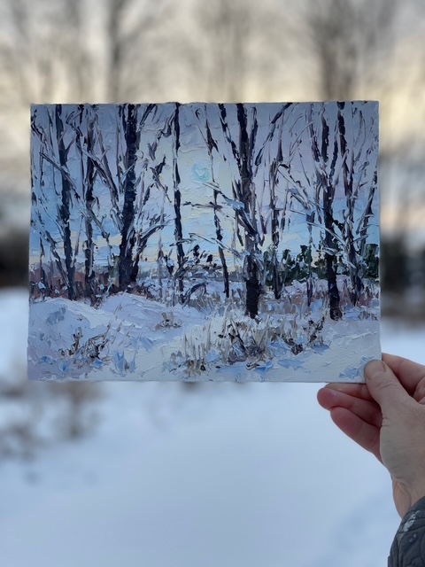 Each painting invites you into an atmospheric scene—lush fields, distant mountains, serene valleys—all rendered with thoughtful texture and vibrant light