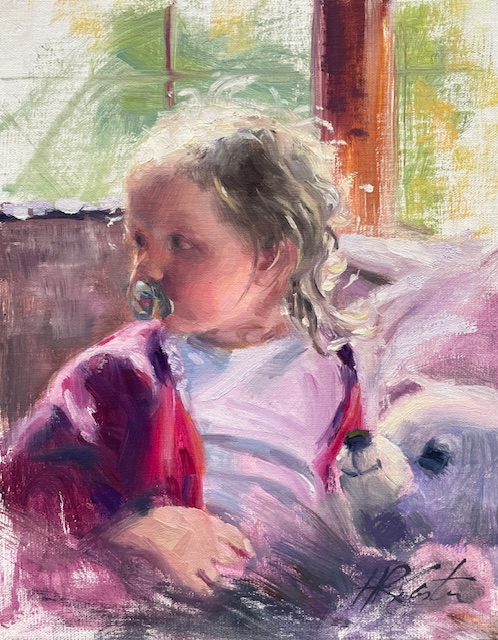 The broad body of plein air work explores the connection between people and the natural world and is deeply rooted in the rhythms of nature. She also offers live event painting, including weddings and special events. This work allows her to celebrate her commitment to community engagement and the shared experience of art. Easter’s work invites viewers to pause and reflect, offering a contemplative space where the boundaries between self and nature dissolve, honoring the sacred in the everyday and the enduring power of beauty to connect us with something greater. Commission inquiries are welcome. Her websites are Hreaster.com and Paintographer.art. Her day to day practice can be followed on Instagram at Portraitaday and Paintographer.